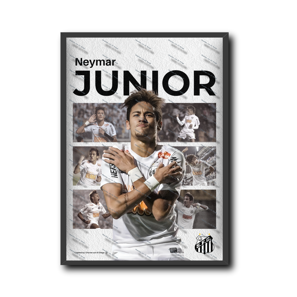 Decora tu espacio con este impresionante cuadro de Neymar luciendo la camiseta del Santos, el equipo donde inició su exitosa carrera en el Brasileirao. Una pieza única que captura el espíritu de su juventud y talento, perfecta para inspirar a cualquier aficionado y darle vida a tus ambientes con la esencia del fútbol brasileño.