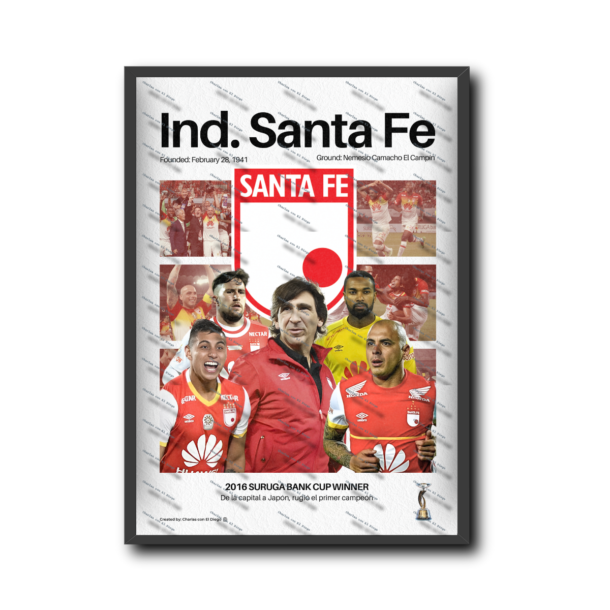 Este cuadro rinde homenaje a Santa Fe y sus grandes jugadores que han marcado la historia del club. Una pieza que resalta el talento, la pasión y el legado de quienes han dejado huella en el fútbol colombiano. Perfecto para seguidores que quieren celebrar y mantener viva la esencia de este emblemático equipo. Añade esta obra a tu colección y siente el orgullo de ser parte de la historia de Santa Fe.